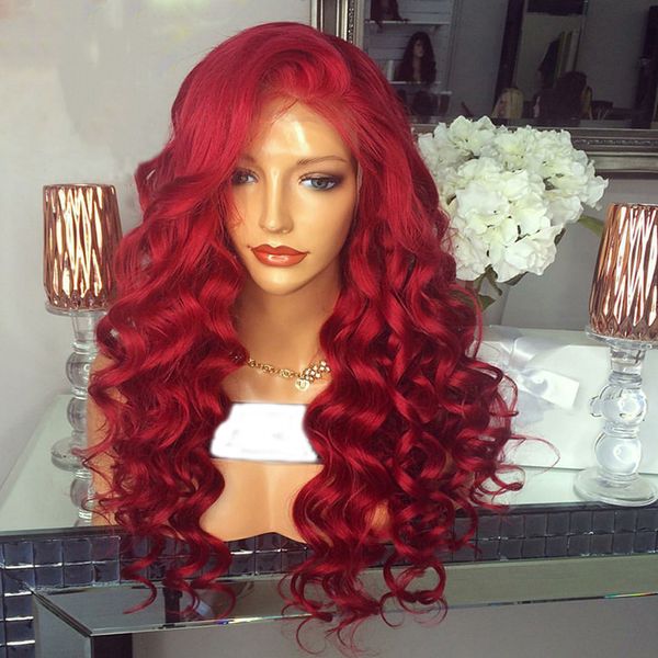 Red 13x6 Lace Front Human Hair Wigs Preplucked Burgundy 360 Full
