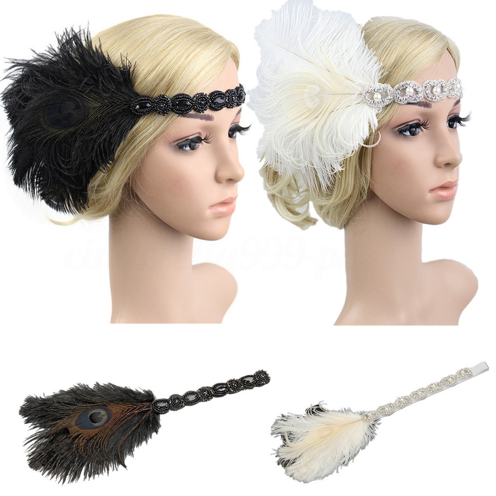 1920s Headband Feather Vintage Bridal Great Gatsby Flapper